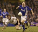 On 21 minutes Pistone was unlucky not to score after heading Alexandersson's corner against the foot of the post. Shortly afterwards, Oakes in Derby's goal made one of his many cock up's. He came out to head a long ball clear, and only managed to play the ball to Steve Watson who did well to hit the ball on target. The attempt was foiled, and Oakes was saved his blushes as the last man headed the Ball just over the Bar. David Unsworth came on for the injured Stubb's and it is a testament to him, and to the lack of any Derby attack, that noone really noticed.